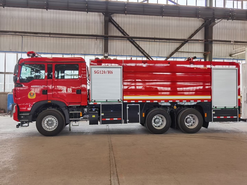 車輛底盤為豪沃ZZ5357TXFV464MF5底盤,發(fā)動(dòng)機(jī)型號(hào)MC11.46-61,功率:341kw,國(guó)六排放標(biāo)準(zhǔn),軸距4300mm+1400mm,罐體材質(zhì):優(yōu)質(zhì)碳鋼板;容罐容量:水12000kg; 消防泵為雄真CB10/60-XZ;消防炮為威斯特PS50W。